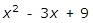 line 1: x squared minus 3x plus 9, line 2: b squared minus 4ac equals open paren negative 3 close paren squared minus 4 open paren 1 close paren open paren 9 close paren line 3: equals 9 minus 36 equals negative 27
